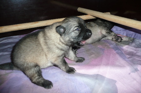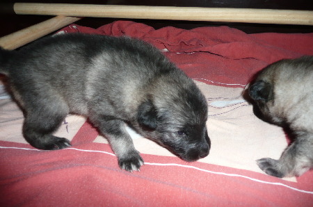 Sie können sich auch schon mit den Vorderbeinen abstützen.
